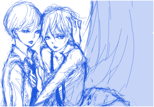 という訳で中間地点位でスクショ撮ってたものから描きなおすことになりました…。レイヤー10枚くらい分けてたんですが、当然全部結合された状態。なんか通り過ぎて楽しくなってきましたvうふふ