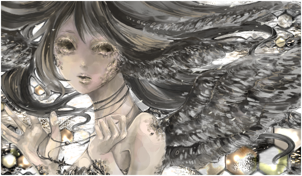 ふぁっさぁあ!感を重視して塗りましたが、羽塗り初で消したり描いたり…あたふたしまくりでした;