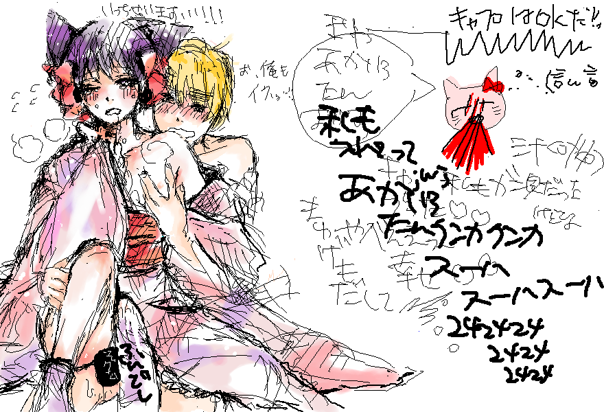 そろそろ絵を描こうってことで私が菊で誘ったらあかいろたんが絡んで来てくれたよ!!!(´///◒///`) SUKI!!!